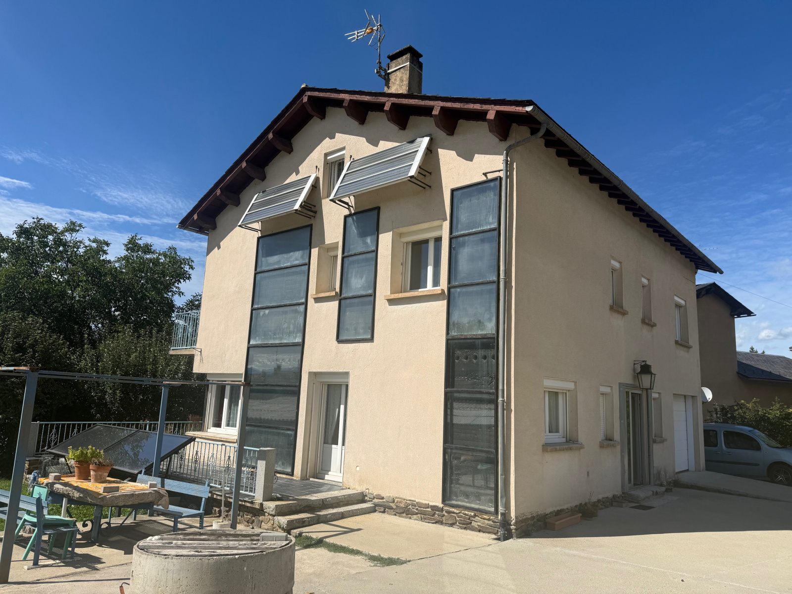 La maison construite dans les années 80 est de bonne qualité. Conçue et bâtie avec soin, son adaptation constante aux avancées techniques la rend économe. Un mur trombe, un chauffe-eau et des panneaux thermodynamiques, un poêle à pellets, le chauffage central et deux cheminées.