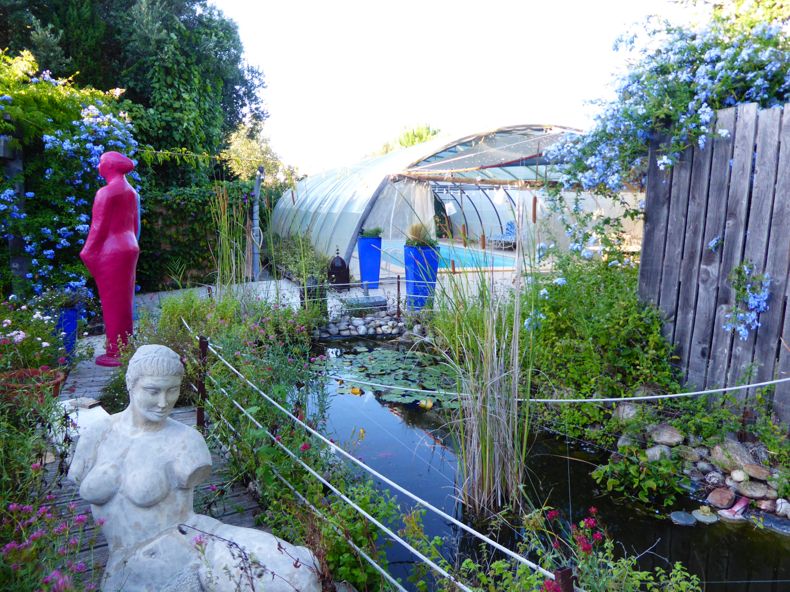 La propriété est constituée de grandes parcelles aménagées en jardins, prairies et serres-tunnel dont une est plantée d’orangers et autres agrumes.